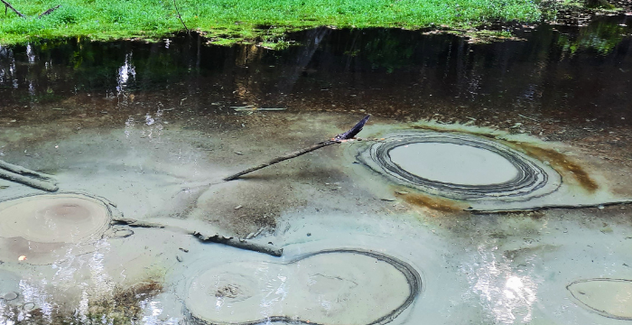 Pohjavesivaikutteisen puron mukana virtaa viileää ja kirkasta vettä Mielahden uimarannalle. Kuva: Elina Nystedt